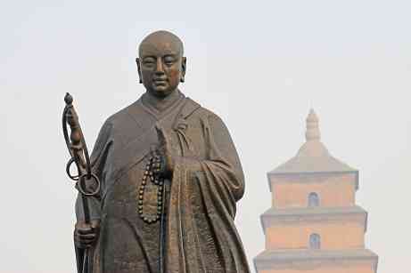 3、翻译续写佛教经典。其中最伟大的是他对佛学典籍“截续真,开兹后学”的翻译。玄奘自印度归国,在此后的20年中,在长安和洛阳两地,玄奘在助手们的帮助下,共译出佛教经论74部,1335卷,每卷万字左右,合计1335万字,占去整个唐代译经总数的一半以上,相当于中国历史上另外三大翻译家译经总数的一倍多,而且在质量上大大超越前人,成为翻译史上的杰出典范。