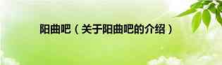 大家好,小活来为大家解答以上的问题。阳曲吧,关于阳曲吧的介绍很多人还不知道,现在让我们一起来看看吧!