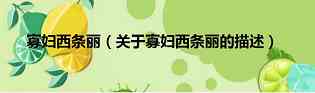 相信通过寡妇西条丽,关于寡妇西条丽的描述这篇文章能帮到你,在和好朋友分享的时候,也欢迎感兴趣小伙伴们一起来探讨。