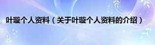 大家好,小活来为大家解答以上的问题。叶璇个人资料,关于叶璇个人资料的介绍很多人还不知道,现在让我们一起来看看吧!