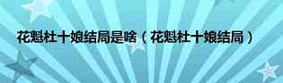 大家好,小方来为大家解答以上问题,花魁杜十娘结局是啥,花魁杜十娘结局很多人还不知道,现在让我们一起来看看吧!