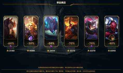 每位玩家,可以从幸运商店里获得6个皮肤的折扣,折扣程度不等,有的低于50%,有的高于50%。