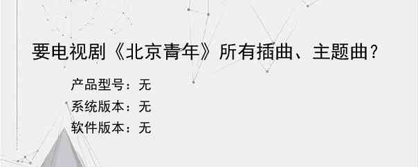 当前位置: 首页 > 生活问答 > 生活常识 > 要电视剧《北京青年》所有插曲、主题曲?