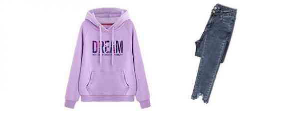 1.卫衣+牛仔裤。卫衣和牛仔裤搭配,有种随意的慵懒感,搭配的时候,牛仔裤可以选择稍微宽松一些的,并且在卫衣里面叠穿白色T恤,隐约露出T恤的下摆,更有青春活力感。