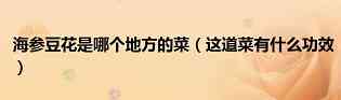 大家好,小美来为大家解答以上问题。海参豆花是哪个地方的菜,这道菜有什么功效很多人还不知道,现在让我们一起来看看吧!