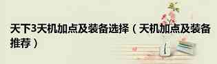 大家好,小美来为大家解答以上问题。天下3天机加点及装备选择,天机加点及装备推荐很多人还不知道,现在让我们一起来看看吧!