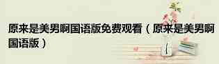 导读:大家好,小双来为大家解答以上问题。原来是美男啊国语版免费观看,原来是美男啊国语版很多人还不知道,现在让我们一起来看看吧!1、高清没有国语版,全是中文字幕,有很多双语版,不太清楚。2、高清版的在线观看地址是3360 http://www.mmv123.cn。3、我看了,很不错。本文到此结束,希望对大家有所帮助。...