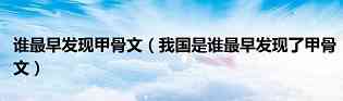 大家好,小美来为大家解答以上问题。谁最早发现甲骨文,我国是谁最早发现了甲骨文很多人还不知道,现在让我们一起来看看吧!