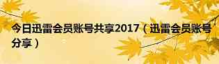 今日迅雷会员账号共享2017