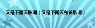 大家好,成成来为大家解答以上问题。又是下雨天歌词,又是下雨天整首歌词很多人还不知道,现在让我们一起来看看吧!