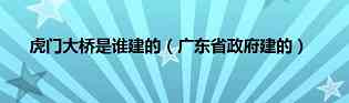 大家好,小美来为大家解答以上问题。虎门大桥是谁建的,广东省政府建的很多人还不知道,现在让我们一起来看看吧!