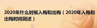 以上就是小编为大家介绍的2020年什么时候入梅和出梅的全部内容,如果大家还对相关的内容感兴趣,请持续关注上海建站网!