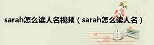 大家好,小双来为大家解答以上问题。sarah怎么读人名视频,sarah怎么读人名很多人还不知道,现在让我们一起来看看吧!