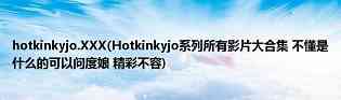 您好,小郑就为大家解答关于hotkinkyjo.XXX,Hotkinkyjo系列所有影片大合集 不懂是什么的可以问度娘 精彩不容相信很多小伙伴还不知道,现在让我们一起来看看吧!