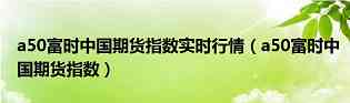 大家好,精选小编来为大家解答以上问题。a50富时中国期货指数实时行情,a50富时中国期货指数很多人还不知道,现在让我们一起来看看吧!