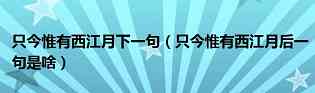 以上就是小编为大家介绍的只今惟有西江月下一句的全部内容,如果大家还对相关的内容感兴趣,请持续关注上海建站网!