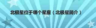 以上就是小编为大家介绍的北极星位于哪个星座的全部内容,如果大家还对相关的内容感兴趣,请持续关注上海建站网!