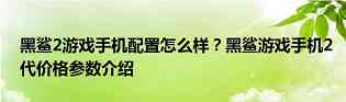 原标题:黑鲨2配置怎么样?黑鲨游戏手机2参数和地图奖励