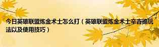大家好,小吃来为大家解答以上问题。英雄联盟炼金术士怎么打,英雄联盟炼金术士辛吉德玩法以及使用技巧很多人还不知道,现在让我们一起来看看吧!