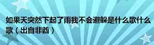 大家好,小美来为大家解答以上问题。如果天突然下起了雨我不会避躲是什么歌什么歌,出自非酋很多人还不知道,现在让我们一起来看看吧!