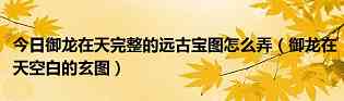 大家好,小良来为大家解答以上问题。御龙在天完整的远古宝图怎么弄,御龙在天空白的玄图很多人还不知道,现在让我们一起来看看吧!