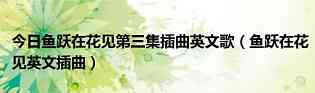 大家好,小良来为大家解答以上问题。鱼跃在花见第三集插曲英文歌,鱼跃在花见英文插曲很多人还不知道,现在让我们一起来看看吧!