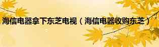 大家好,小双来为大家解答以上问题。海信电器拿下东芝电视,海信电器收购东芝很多人还不知道,现在让我们一起来看看吧!