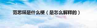 大家好,小美来为大家解答以上问题。范思瑶是什么梗,是怎么解释的很多人还不知道,现在让我们一起来看看吧!