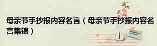 以上就是小编为大家介绍的母亲节手抄报内容名言的全部内容,如果大家还对相关的内容感兴趣,请持续关注上海建站网!