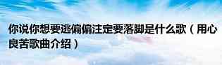 大家好,小美来为大家解答以上问题。你说你想要逃偏偏注定要落脚是什么歌,用心良苦歌曲介绍很多人还不知道,现在让我们一起来看看吧!