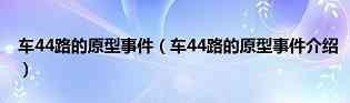 大家好,成成来为大家解答以上问题。车44路的原型事件,车44路的原型事件介绍很多人还不知道,现在让我们一起来看看吧!