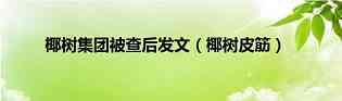 大家好,小双来为大家解答以上问题。椰树集团被查后发文,椰树皮筋很多人还不知道,现在让我们一起来看看吧!