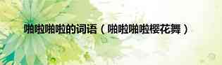 大家好,小双来为大家解答以上问题。啪啦啪啦的词语,啪啦啪啦樱花舞很多人还不知道,现在让我们一起来看看吧!