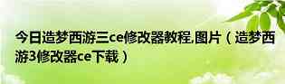 导读:大家好,小良来为大家解答以上问题。造梦西游三ce修改器教程,图片,造梦西游3修改器ce下载很多人还不知道,现在让我们一起来看看吧!1、怎吗下载。本文到此结束,希望对大家有所帮助。...