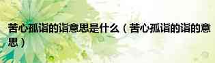 1、苦心孤诣是什么意思?孤独:别人达不到的。