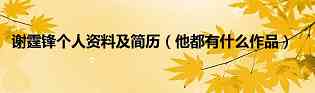 大家好,小美来为大家解答以上问题。谢霆锋个人资料及简历,他都有什么作品很多人还不知道,现在让我们一起来看看吧!