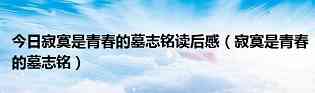 大家好,小良来为大家解答以上问题。寂寞是青春的墓志铭读后感,寂寞是青春的墓志铭很多人还不知道,现在让我们一起来看看吧!