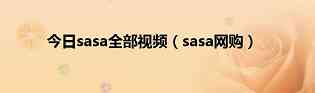 大家好,小良来为大家解答以上问题。sasa全部视频,sasa网购很多人还不知道,现在让我们一起来看看吧!