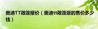大家好,小雷来为大家解答以上问题。奥迪TT敞篷报价,奥迪tt敞篷版的售价多少钱很多人还不知道,现在让我们一起来看看吧!