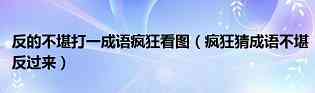 大家好,小双来为大家解答以上问题。反的不堪打一成语疯狂看图,疯狂猜成语不堪反过来很多人还不知道,现在让我们一起来看看吧!