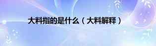大家好,小美来为大家解答以上问题。大料指的是什么,大料解释很多人还不知道,现在让我们一起来看看吧!