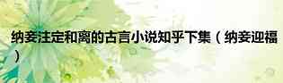 大家好,小双来为大家解答以上问题。纳妾注定和离的古言小说知乎下集,纳妾迎福很多人还不知道,现在让我们一起来看看吧!