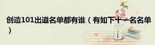 大家好,成成来为大家解答以上问题。创造101出道名单都有谁,有如下十一名名单很多人还不知道,现在让我们一起来看看吧!