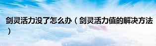 大家好,小美来为大家解答以上问题。剑灵活力没了怎么办,剑灵活力值的解决方法很多人还不知道,现在让我们一起来看看吧!