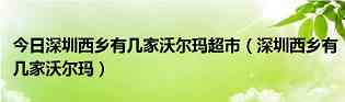 大家好,小吃来为大家解答以上问题。深圳西乡有几家沃尔玛超市,深圳西乡有几家沃尔玛很多人还不知道,现在让我们一起来看看吧!