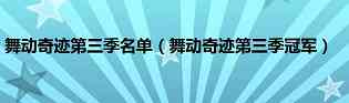导读:大家好,小双来为大家解答以上问题。舞动奇迹第三季名单,舞动奇迹第三季冠军很多人还不知道,现在让我们一起来看看吧!1、大家都知道冠军是有希望的亚军,季军,季军,季军。2、看了总决赛的直播==。本文到此结束,希望对大家有所帮助。...