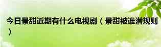 大家好,小良来为大家解答以上问题。景甜近期有什么电视剧,景甜被谁潜规则很多人还不知道,现在让我们一起来看看吧!