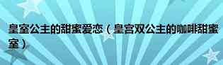 大家好,小双来为大家解答以上问题。皇室公主的甜蜜爱恋,皇宫双公主的咖啡甜蜜室很多人还不知道,现在让我们一起来看看吧!