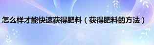 当前位置: 首页 > 生活问答 > 金湾生活 > 怎么样才能快速获得肥料