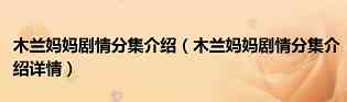 以上就是小编为大家介绍的木兰妈妈剧情分集介绍的全部内容,如果大家还对相关的内容感兴趣,请持续关注上海建站网!